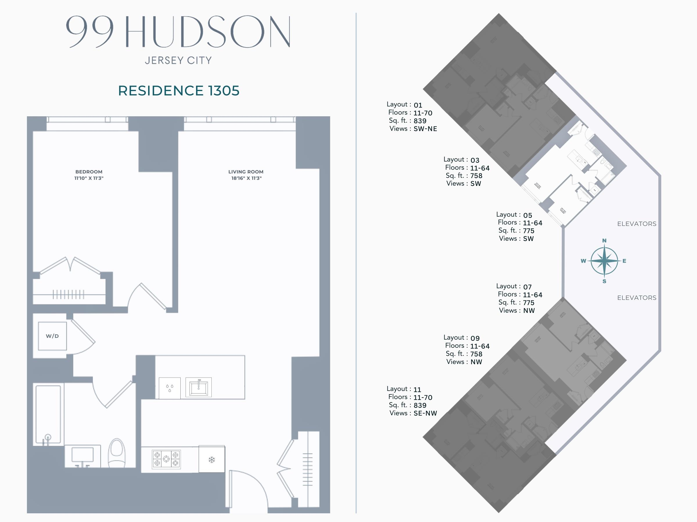99 HUDSON ST Unit: 1305 JC, Downtown NJ, 07302